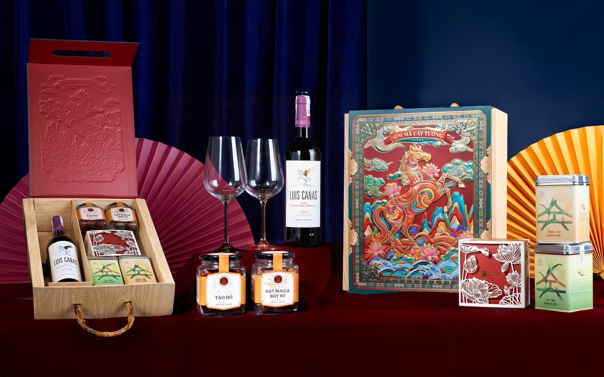 Bộ quà tặng Mã Đáo Tân Xuân là sự hòa quyện tinh tế giữa vang Tây Ban Nha Luis Cañas và đặc sản Việt, gửi gắm lời chúc khởi đầu thuận lợi, hanh thông và thịnh vượng trong năm mới. Thiết kế sang trọng, ý nghĩa phong thủy sâu sắc – lựa chọn hoàn hảo để biếu Tết.
