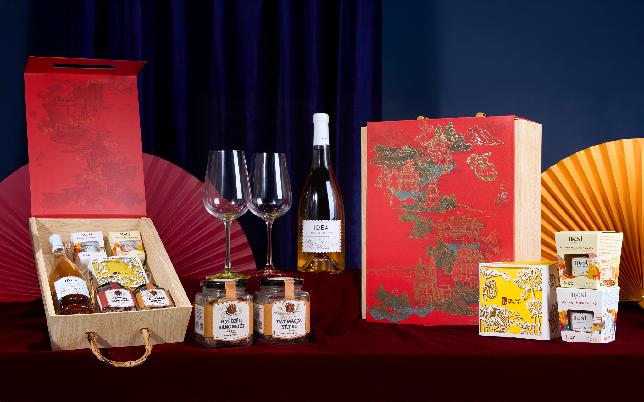 “Mùa Sum Vầy” không chỉ mang tinh thần châu Âu hiện đại mà còn gói trọn hồn vị Việt trong từng món quà. Súp yến lục vị thượng hạng 300ml, cùng với yến tươi mật ong hoa cúc và yến tươi mật hoa thốt nốt Quốc Yến, mang đến nguồn năng lượng thanh lành, tượng trưng cho sức khỏe và thịnh vượng. Sự kết hợp giữa vang Ý và yến Việt thể hiện thông điệp: hòa quyện giữa tinh hoa thế giới và bản sắc dân tộc.