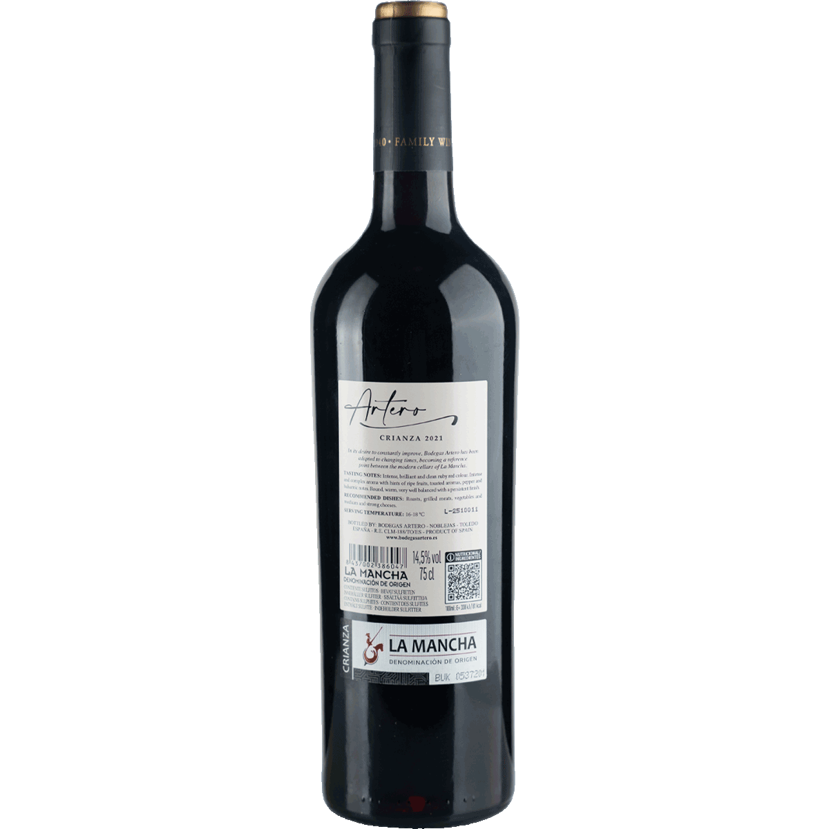 Bodegas Artero Crianza bắt đầu từ những chùm nho được tuyển chọn kỹ lưỡng, trải qua quá trình tách cuống nhẹ nhàng để giữ trọn cấu trúc tự nhiên. Quá trình ngâm ủ cùng vỏ nho giúp rượu đạt được sắc đỏ đậm, chiều sâu và cá tính riêng biệt của từng giống nho. Sau đó, rượu tiếp tục trải qua giai đoạn lên men malolactic, tạo nên độ mượt mà và hài hòa cho cấu trúc hương vị.
